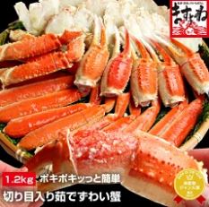 ポキポキッっと簡単に殻むき体験!切り目入り茹でずわい蟹大盛り1.2kg(600g×2)[ボイル/蟹足][送料無料](かに/カニ/蟹/ずわい/ズワイ/お歳暮/御歳暮)